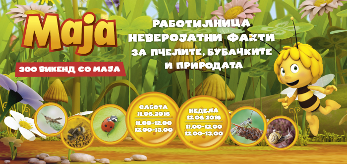 Овој викенд, во сабота и во недела, со почеток од 11 и од 12 часот, Арс Ламина, во соработка со скопската зоолошка градина, организира серија работилници на тема „Пчеличката Маја и пријателите: Неверојатни факти за пчелите, бубачките и природата“.